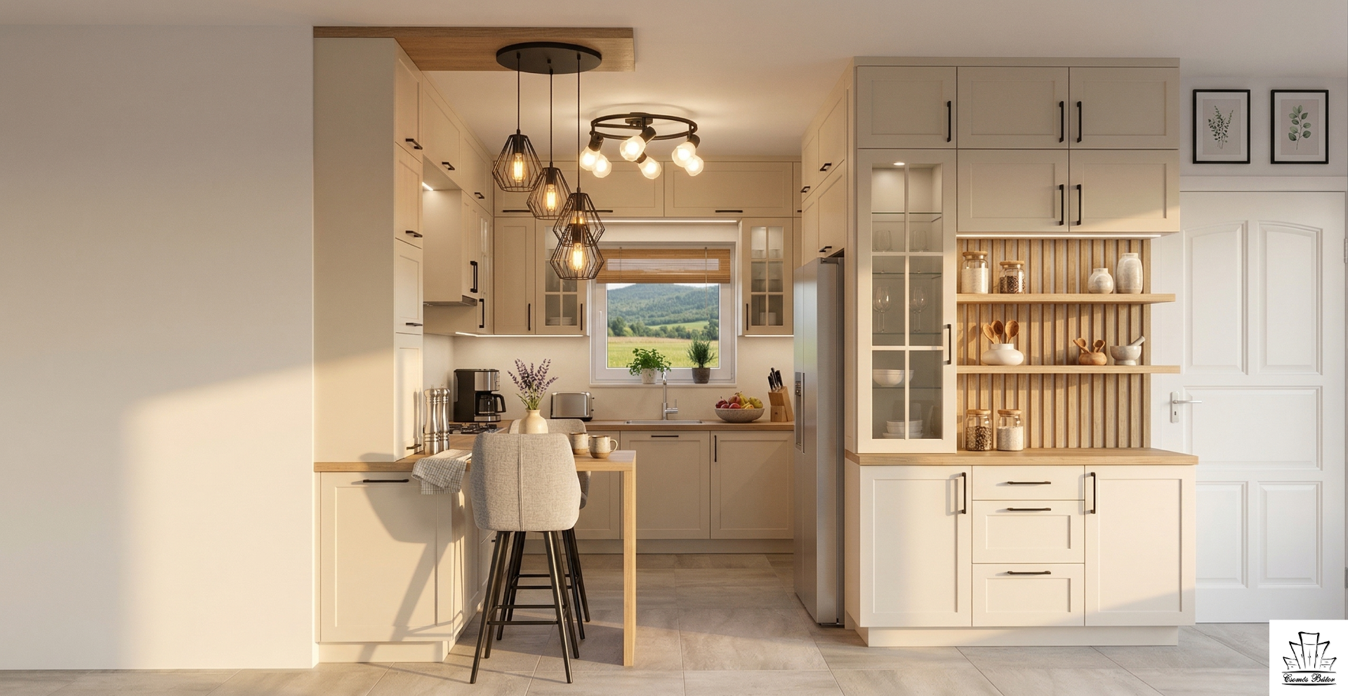 konyhát egy tálaló szekrénnyel megtoldva. A stílus is hasonló lesz, mert ez