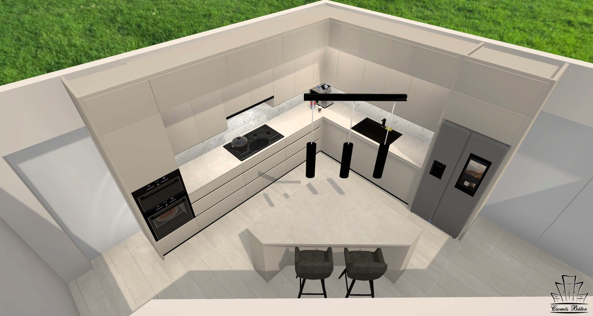 Méretek: sütős oldal 4000 mm, hűtős oldal 3470 🤣, a sziget 1525 x 1525 mm.