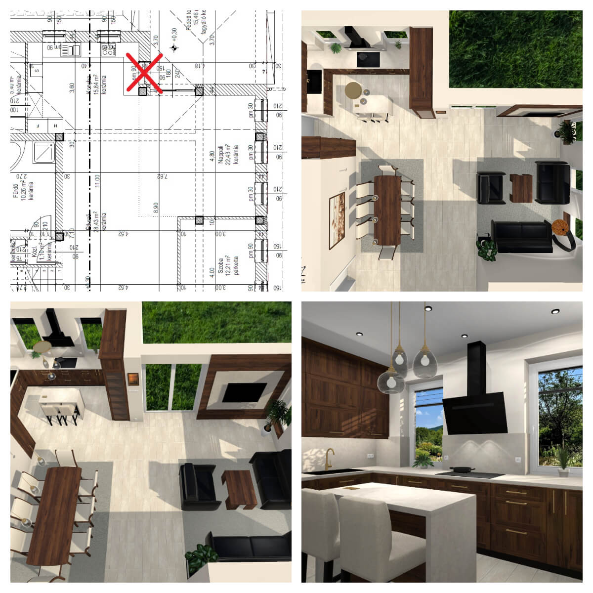 Lilla: "Szia, Az asztalosnak átadtuk a terveket még folyamatban van az árajánlat adás, de képzeld azt mondta, hogy "sok konyhát megcsináltam már az életem során, de soha nem kaptam még ennyire kidolgozott terveket! Vannak benne nagyon jó megoldások! Gratulálok a tervezőnek nagyon alapos munkát végzett!"
